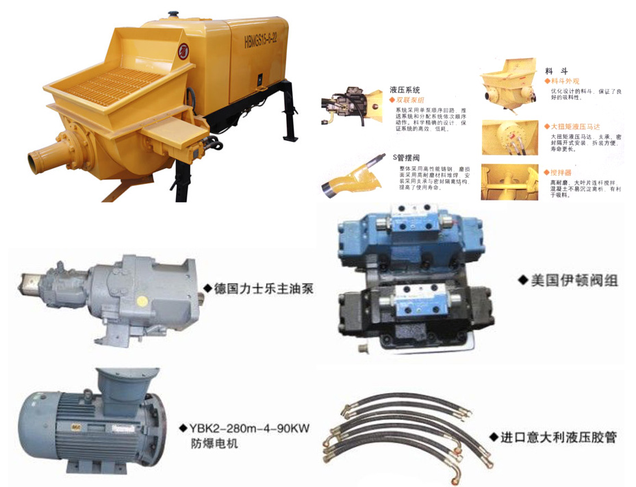 HBMD15/6-22S為隔爆、全液壓型煤礦用混凝土泵,采用電機(jī)驅(qū)動,防爆類別為:廣泛適用于煤礦井下工作環(huán)境。