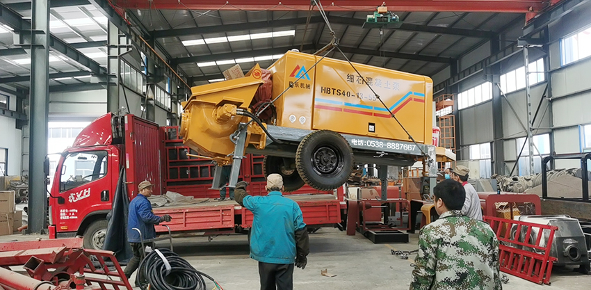 工作原理:當(dāng)液壓系統(tǒng)壓力油進(jìn)入一主油缸時(shí),活塞桿伸出,同時(shí)通過密封回路連通管的壓力油使另一活塞桿回縮。與主油缸活塞桿相連的混凝土輸送活塞回縮時(shí)在輸送缸內(nèi)產(chǎn)生自吸作用,料斗中的混凝土在大氣壓力作用和攪拌葉片的助推作用下通過滑閥吸入口被吸入輸送缸。同時(shí),另一主油缸在油壓的作用下,推動主油缸的活塞桿伸出并同時(shí)推動混凝土活塞壓出輸送缸中的混凝土,通過滑閥輸送口Y字管進(jìn)入混凝土輸送管。動作完成后,系統(tǒng)自動換向使壓力油進(jìn)入另一主油缸,完成另一次不同輸送缸的吸、送行程。如此反復(fù),料斗里的混凝土就被吸入和壓送出輸送缸,通過Y型管和出口連接的管道到達(dá)作業(yè)點(diǎn),完成泵送作業(yè)。