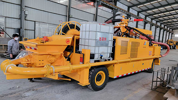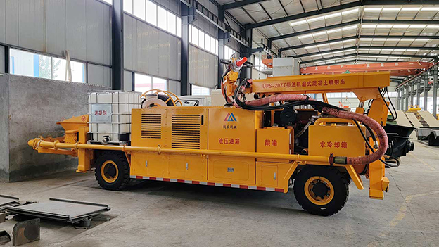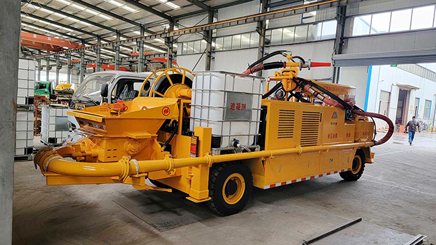 3.車載式濕噴臺(tái)車配有自動(dòng)潤(rùn)滑系統(tǒng),對(duì)主要密封部位采用自動(dòng)潤(rùn)滑,油脂加注量、加注時(shí)間自動(dòng)控制,大大延長(zhǎng)易損件壽命。速凝劑添加連續(xù)可調(diào),可根據(jù)噴漿量調(diào)節(jié)。