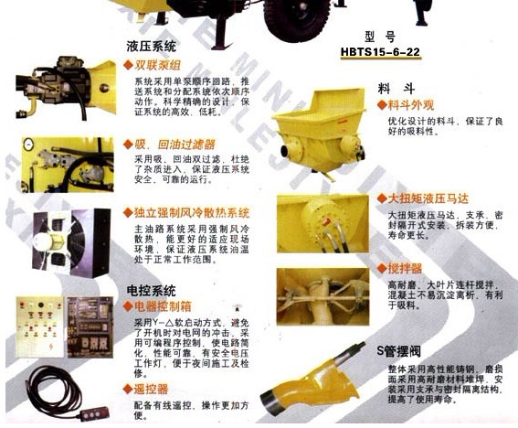 電機 主油泵(現(xiàn)在一般用韓國川崎的進口主油泵) 電磁閥(國內(nèi)用華德的多) 料缸 主油缸(國內(nèi)品牌好的是協(xié)力油缸) 潤滑泵 (6路潤滑泵)風(fēng)冷(冷卻液壓油的,也有廠家用水冷,水冷工地需要接水,就是這個麻煩一些)電控柜 (PLC歐姆龍的比較好點)。